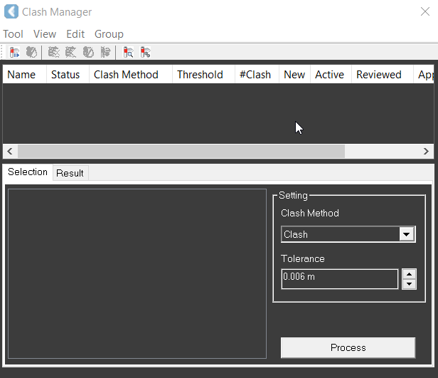 If the CAD drawing has been changed, it may cause the clashing situation to change, and you need to reprocess the clashing. Either select CAD objects and click Process again or select a clash record to verify.