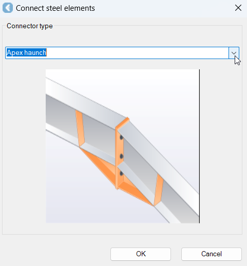 Select a connector type in the Connect steel elements dialog, and click OK.