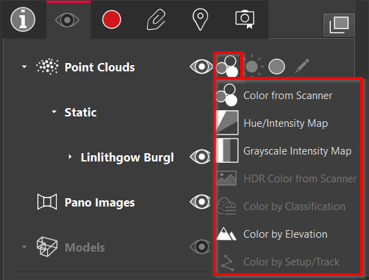 To enable or disable the point cloud visibility, simply click the visibility icon