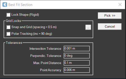 Then, click Pick in the upper-right corner of the Best Fit Section dialog.