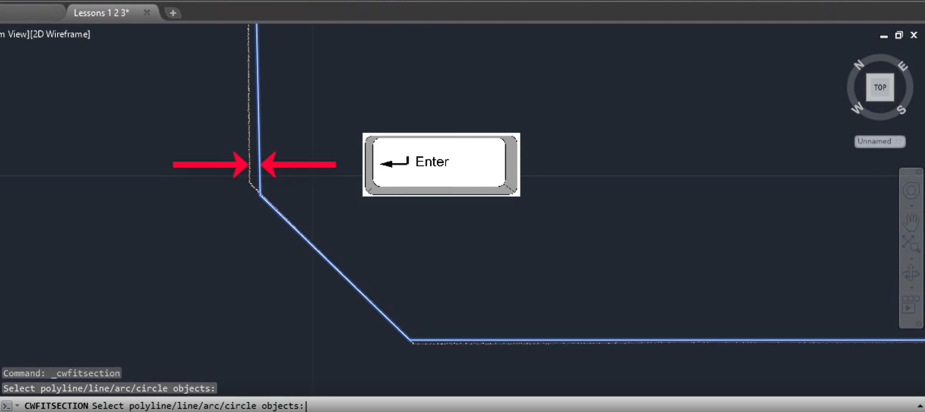 Click the Fit Section button in the Line-Tools panel or type a command line prompt specific to the preferred CAD system and press ENTER.