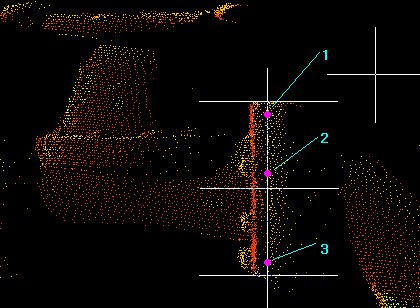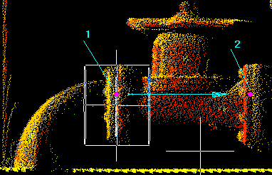 EAST / NORTH / UP / VIEWX / VIEWY: If point clouds are registered such that the pipelines are pointing to east, north, or up, use fixed flange axis direction. If the view direction can be manipulated to make the flange axis parallel to the X or Y view direction, use the X or Y view direction. The first pick defines the seed point to grow a flange. The pick should be in a smooth area of the outer cylindrical surface of a flange. The subsequent picks will adjust the work point along the axis.