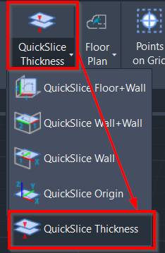 In CloudWorx for Bentley, click QuickSlice in the Line-Tools panel and specify slice thickness in the Quick Slice dialog.