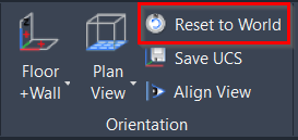 Note: This action is equivalent to selecting the WCS option from the coordinate system drop-down below the View Cube, except that Reset to World also zooms in to the origin of the coordinate system.