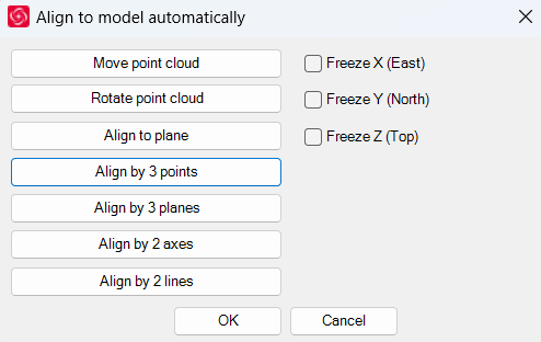 In the Align to model automatically dialog that appears, select the desired alignment method and click OK.
