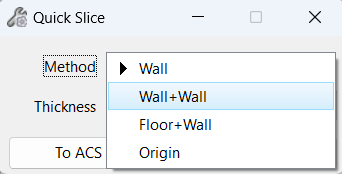 In CloudWorx for Bentley, click QuickSlice and select the Wall+Wall method in the Quick Slice dialog.