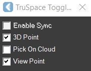 View Point: When enabled, the viewpoint of the active CAD viewport automatically updates to match the TruSpace viewpoint. When needed, use the Regenerate Points command to load more details.