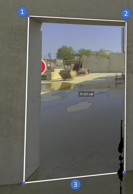 Mouse Control: The first click defines the first corner of the rectangle, the second click defines the second corner of the rectangle, and the third click defines the opposite edge of the rectangle. When defining the opposite edge of the rectangle, the edge will snap to the nearest surface. This is done to ensure that the area measurement is along a flat surface.
