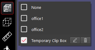 To activate a clip box, click the Saved Clips button and select the clip box(es) to turn on. Temporary clips can be edited by selecting the Edit button and can be deleted using the Delete button.