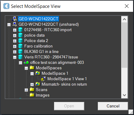 Note: For best graphics performance, please ‘unify’ the ModelSpace View in Cyclone CORE before opening it in CloudWorx.