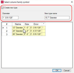 A new entry will be created in the family and the new type will now appear in the list for future column fitting.