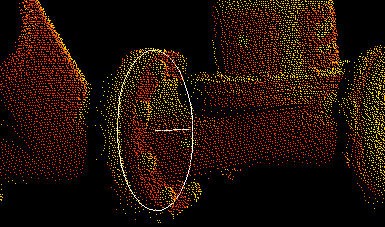 EAST / NORTH / UP / VIEWX / VIEWY: If point clouds are registered such that the pipelines are pointing to east, north, or up, use fixed flange axis direction. If the view direction can be manipulated to make the flange axis parallel to the X or Y view direction, use the X or Y view direction. The first pick defines the seed point to grow a flange. The pick should be in a smooth area of the outer cylindrical surface of a flange. The subsequent picks will adjust the work point along the axis.