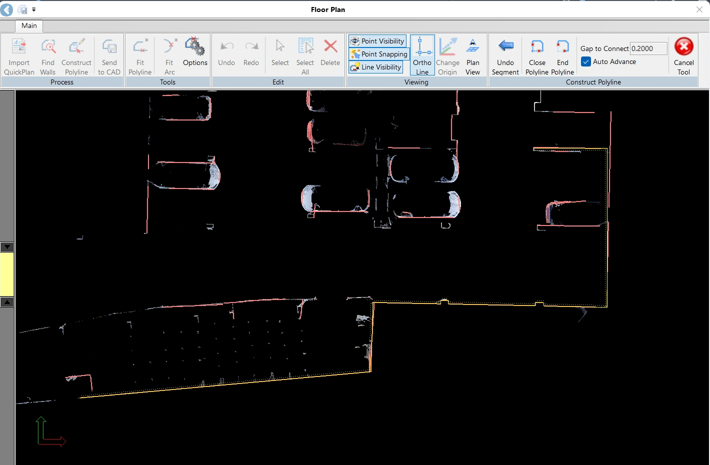 After making full use of the automatic preliminary Floor Plan tools, you may wish to refine the Floor Plan further by extracting additional polylines.
