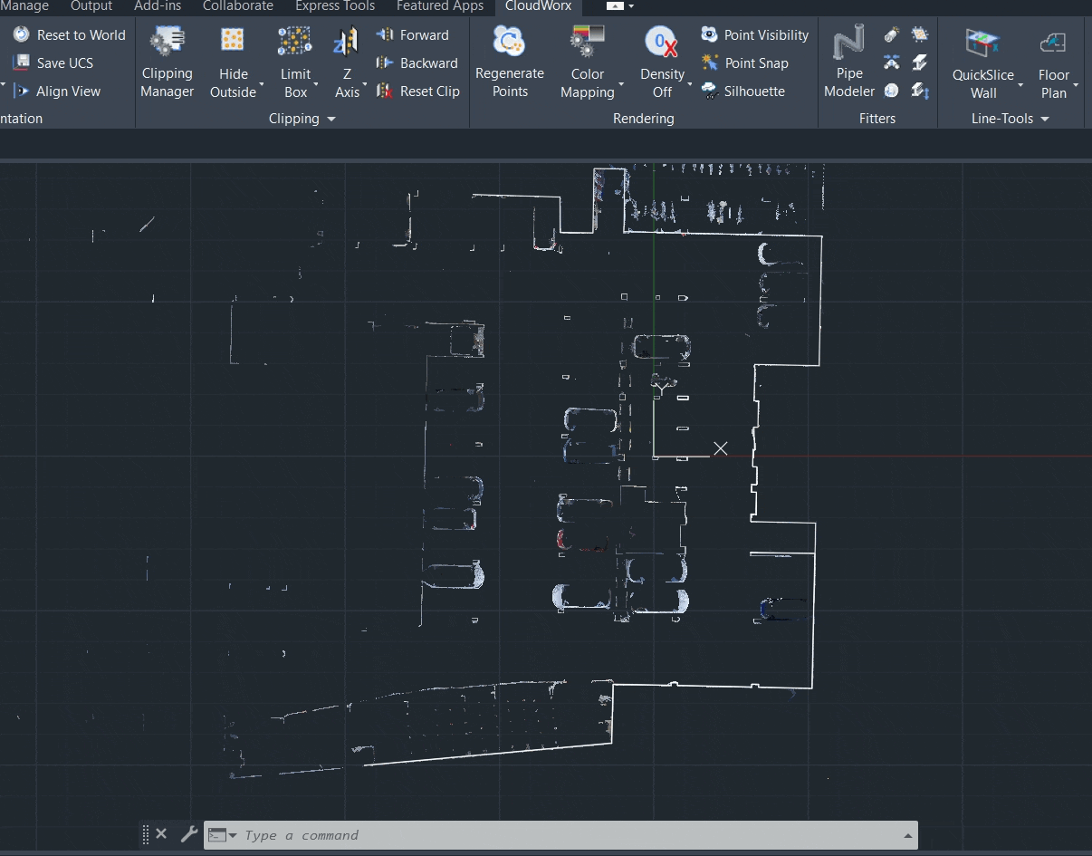 To speed up processing of point cloud data, it can be helpful to temporarily hide unnecessary points. By eliminating specific portions of data, you can focus on the area of interest and avoid unintentionally selecting points outside of it. Additionally, setting up a quick slice is essential before utilizing the polyline tools available in the Floor Plan tool. See QuickSlice for more details.
