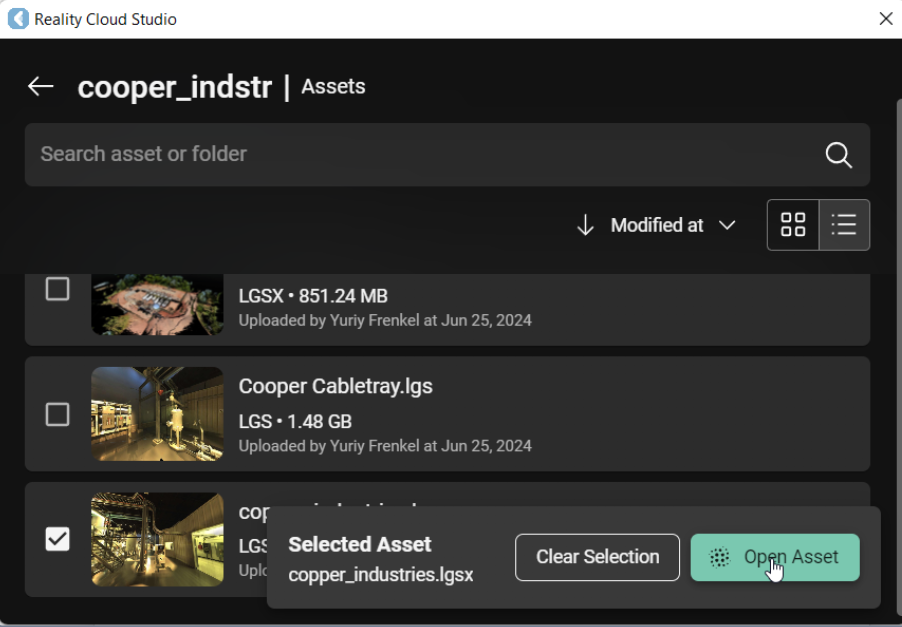 In the Open Reality Cloud Studio Project dialog that appears, select the desired RCS project file.