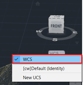 Note: This action is equivalent to selecting the WCS option from the coordinate system drop-down below the View Cube, except that Reset to World also zooms in to the origin of the coordinate system.