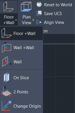 The Wall tools fit temporary patches on a point cloud using point picks selected by the user which can then be used to define vertical and horizontal features to set the UCS to.