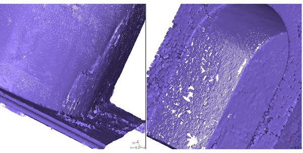 The level of details seems good as there is no hole in the one-piece model. The only problem is found in the jagged aspect of the model. The result is very faceted, spiky and noisy. However, if you make a “standard” smoothing, you will see that most of this noise can be removed (Global Smoothing).