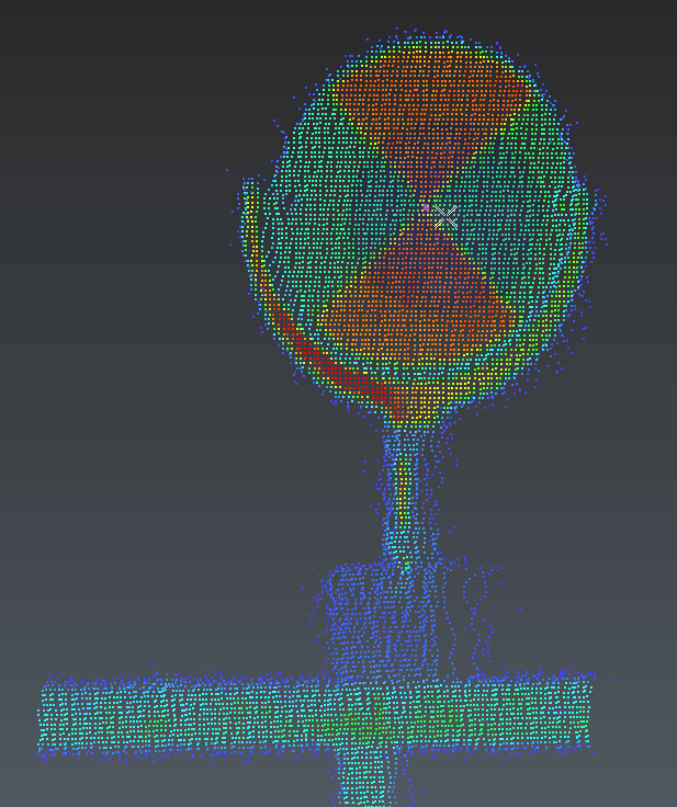 This file contains the point cloud of a round black and white target. The point cloud is displayed in the “Intensity” representation in order to show the difference of intensity.