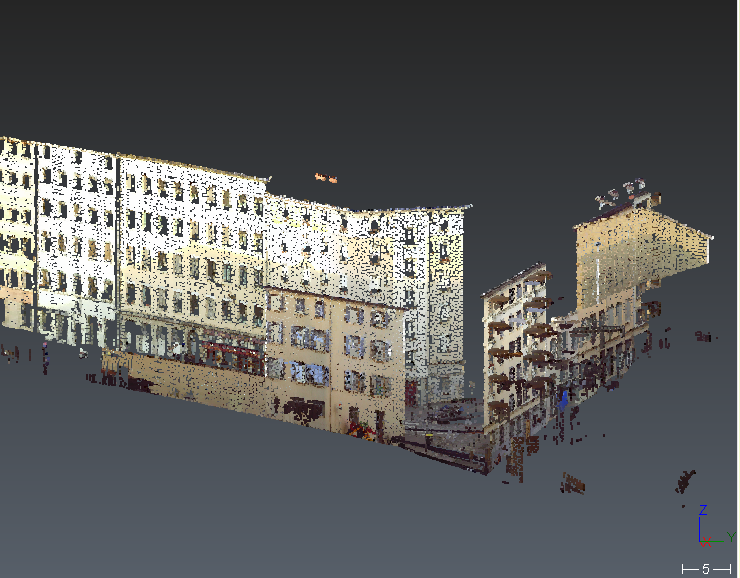 The scanning directions are displayed using small red lines added to some points (from the measured point to the device). This is available on any point cloud when the scanning directions are known. It is suitable to see the beam incidence angle and is used to orient the estimated normal of the point. Scanning directions and normals are often confused: normals are perpendicular directions to a surface which is estimated when dealing about a point cloud (you can use Align To Surface to see the normal of the hovered point). Note that wrong scanning directions will misorient normals which could lead to wrong mesh orientation (please read Exercise: Understand meshes orientation) or may affect the rendering (shading).