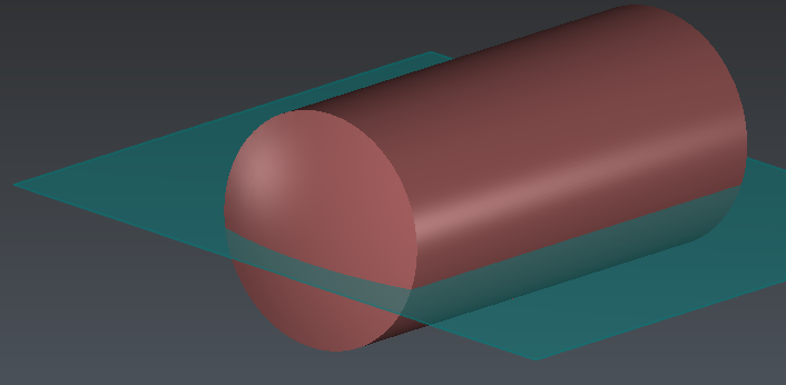 The software creates a measure in order to display the two volumes, above and below the plane.