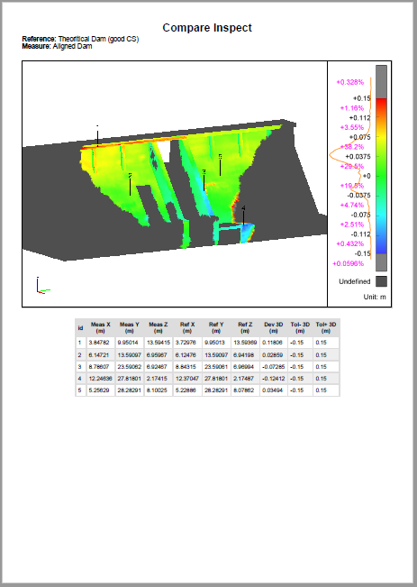 Show only the inspected mesh Compare Theoritical Dam (good CS) / Aligned Dam 1 located in the Compare Inspect Group and make a Zoom All.