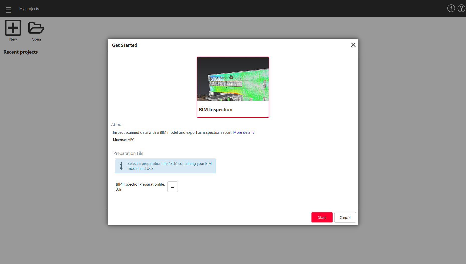 Select BIMInspectionPreparationfile.3dr as the preparation file