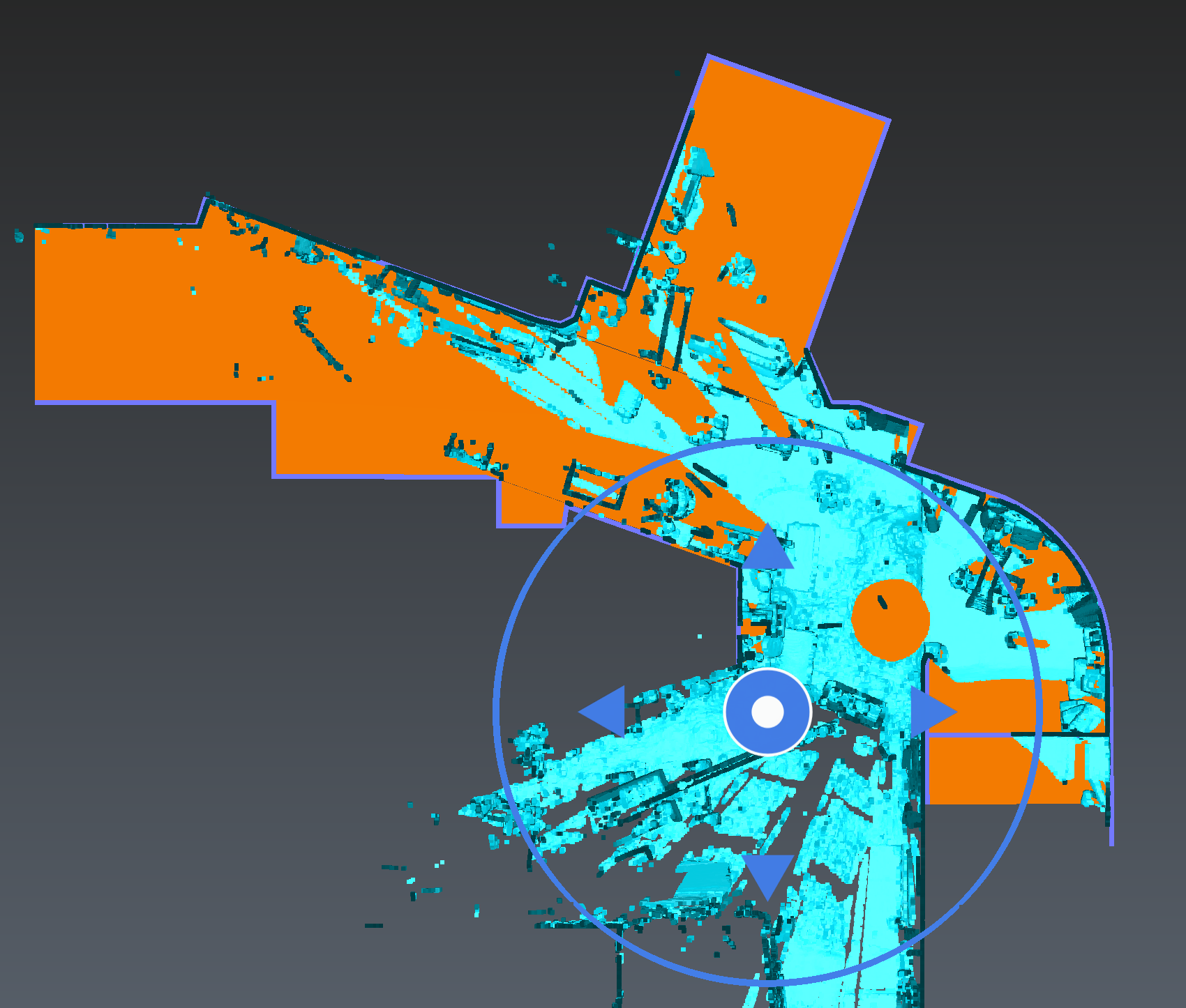 Start using the Top Ortho view: either translate or rotate the cloud in 2D.
