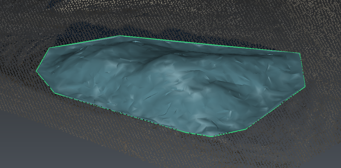 Select the Best plane from contour method to mesh the initial ground below the stockpile. Click Preview. You can use the bulbs to display/hide elements (this can help to find out the best computation method for the ground). Here, you don't have to apply a spike elimination. Click Reset to start again the stockpile contour, if necessary.