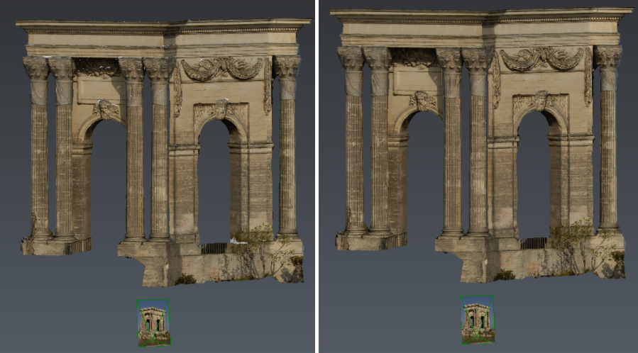 In addition to the camera position, the software needs to know which triangles have to be textured according to its visibility from the point of view. The problem is that the definition of “visible” is not always clear because: