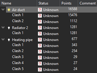 Heating pipe has 5 potential clashes with 677 points overall. Repeat the same process for each clash: