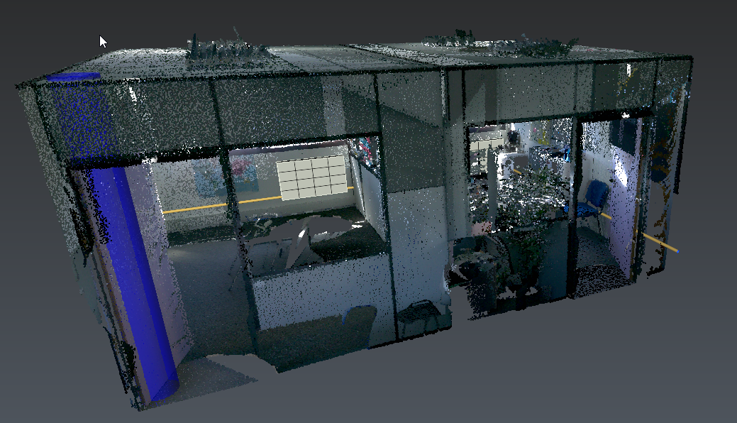 Open the file ClashAnalysis.3dr. It contains a point cloud of a scanned office along with objects representing different planned modifications to the office environment. This file is going to be used throughout this exercise.