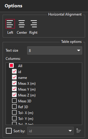 ![]() | Table options: