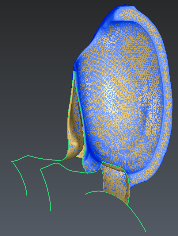 As shown in the figure below, the mesh created during Part I is correctly aligned but requires further cleaning before creating NURBS surfaces.