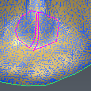 The polyline created with this command allows us to cut the mesh exactly on this border: