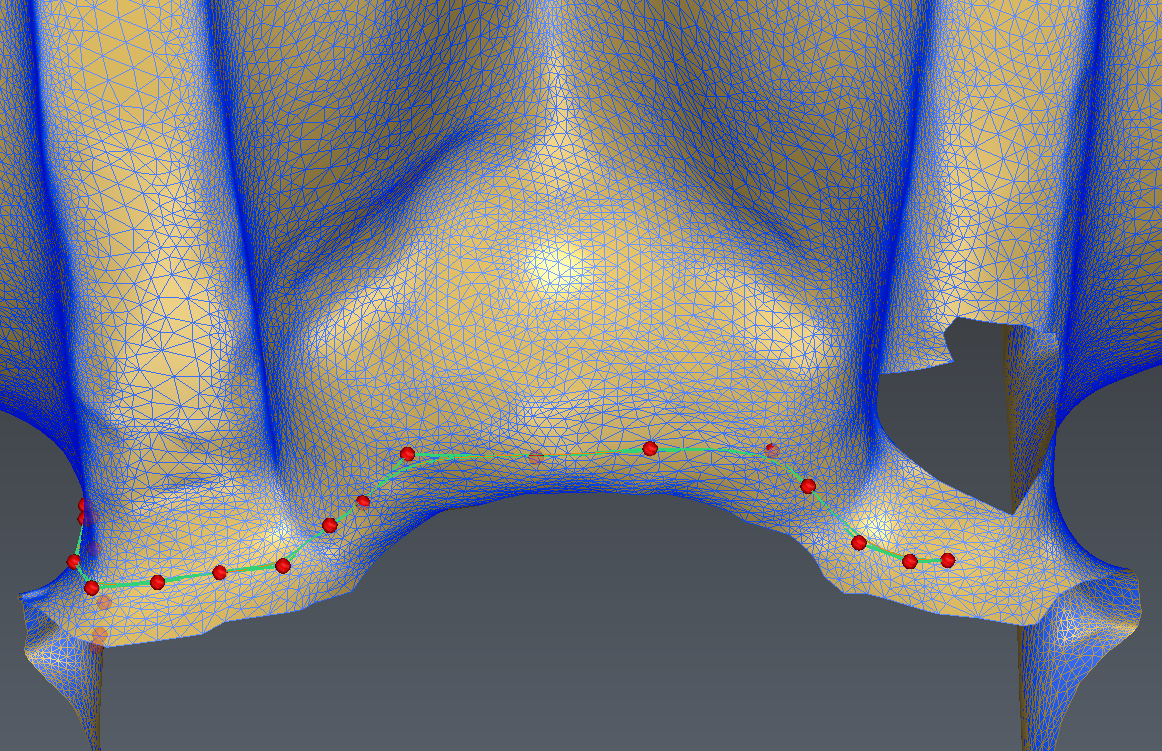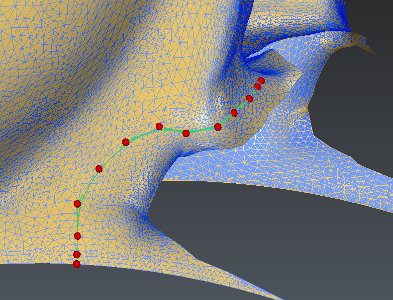 In order to make sure that the polyline drawn reaches the border of the mesh, drag the extremity control point towards the mesh border. It is actually not possible to click exactly on the mesh border but moving the extremity of the polyline to the mesh border is possible.
