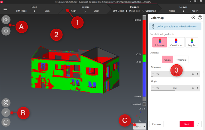 Workflow ribbon: it represents the overall steps of the current workflow. Each steps acts as a button, allowing to easily switch back to other steps.