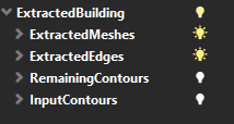A new folder is added to the tree: ExtractedBuilding. It contains all extracted surfaces (ExtractedMeshes), computed intersections (ExtractedEdges) and used contours.