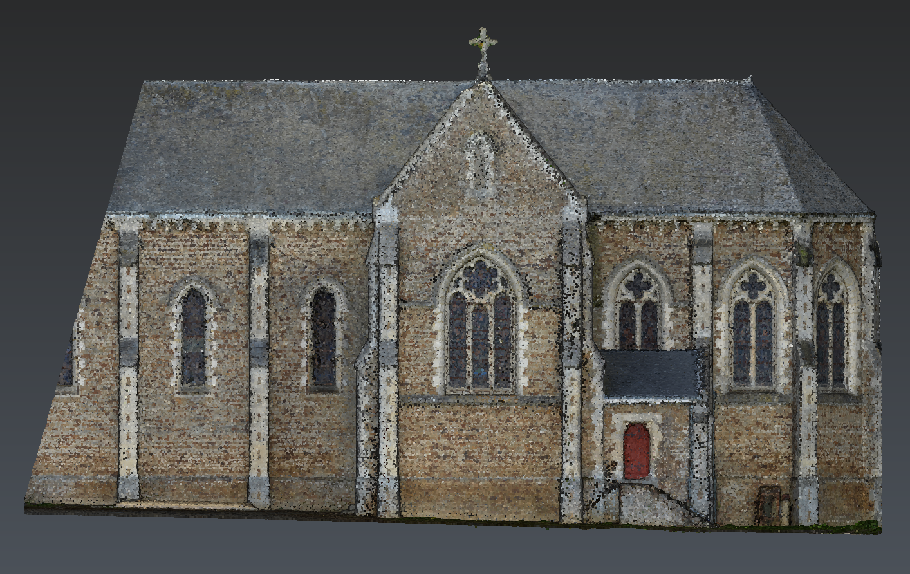 The file contains the point cloud of a church. This point cloud has been extracted from pictures taken by an Aibot UAV from Leica Geosystems.