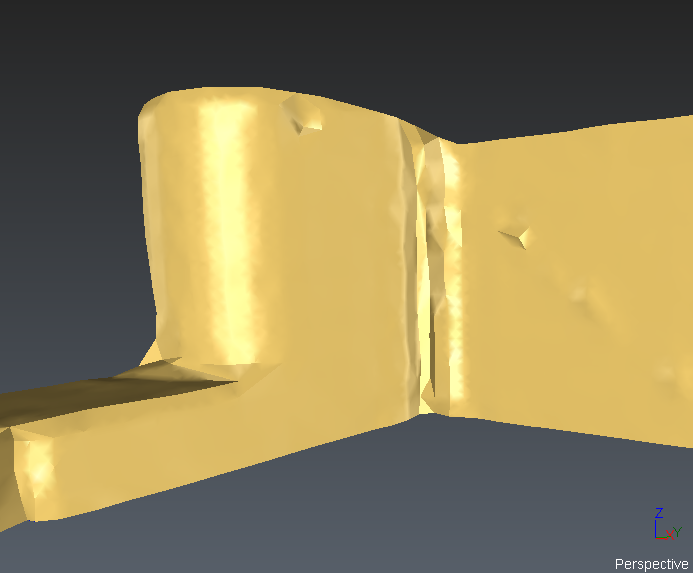 For some objects, it is important to understand the concept of the normal orientation to understand the representation. The normal of an object is the "outside" of this object. The “outside" is the side from where the object is scanned/viewed. At the opposite, the "inside" means inside the material itself. For instance, the orientation of meshes or surfaces is very important for inspection. In the software, meshes and surfaces have a color for the “inside” and another one for the “outside”, so it is very easy to detect when the normal is not correctly oriented. The “outside” color is also shinier than the “inside” color.