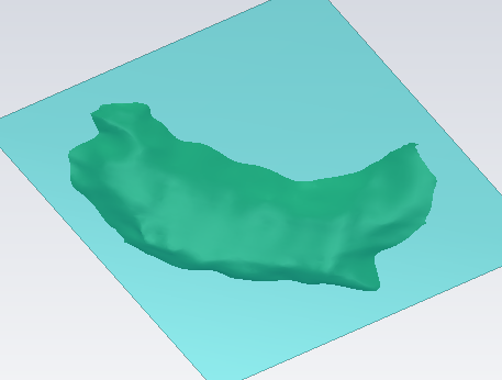 The software creates a measure in order to display the two volumes, above and below the plane.