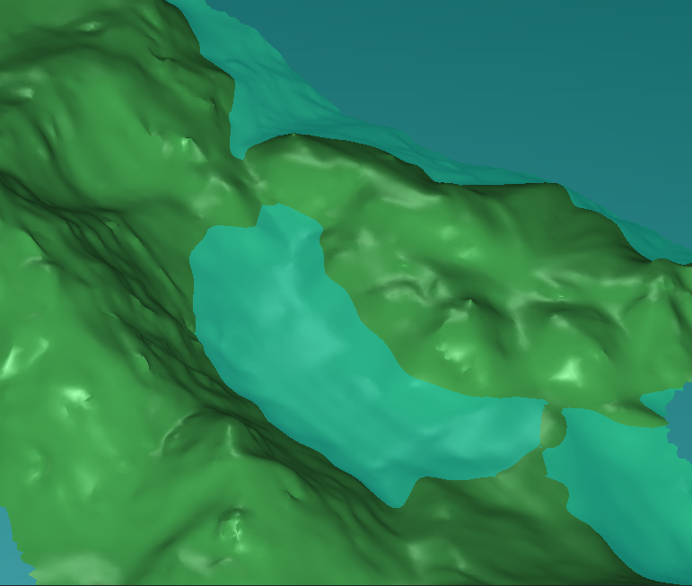 Adjust the water height to find the maximum water height. For this, you must zoom to verify that there is no junction here between the inside and the outside of the lake