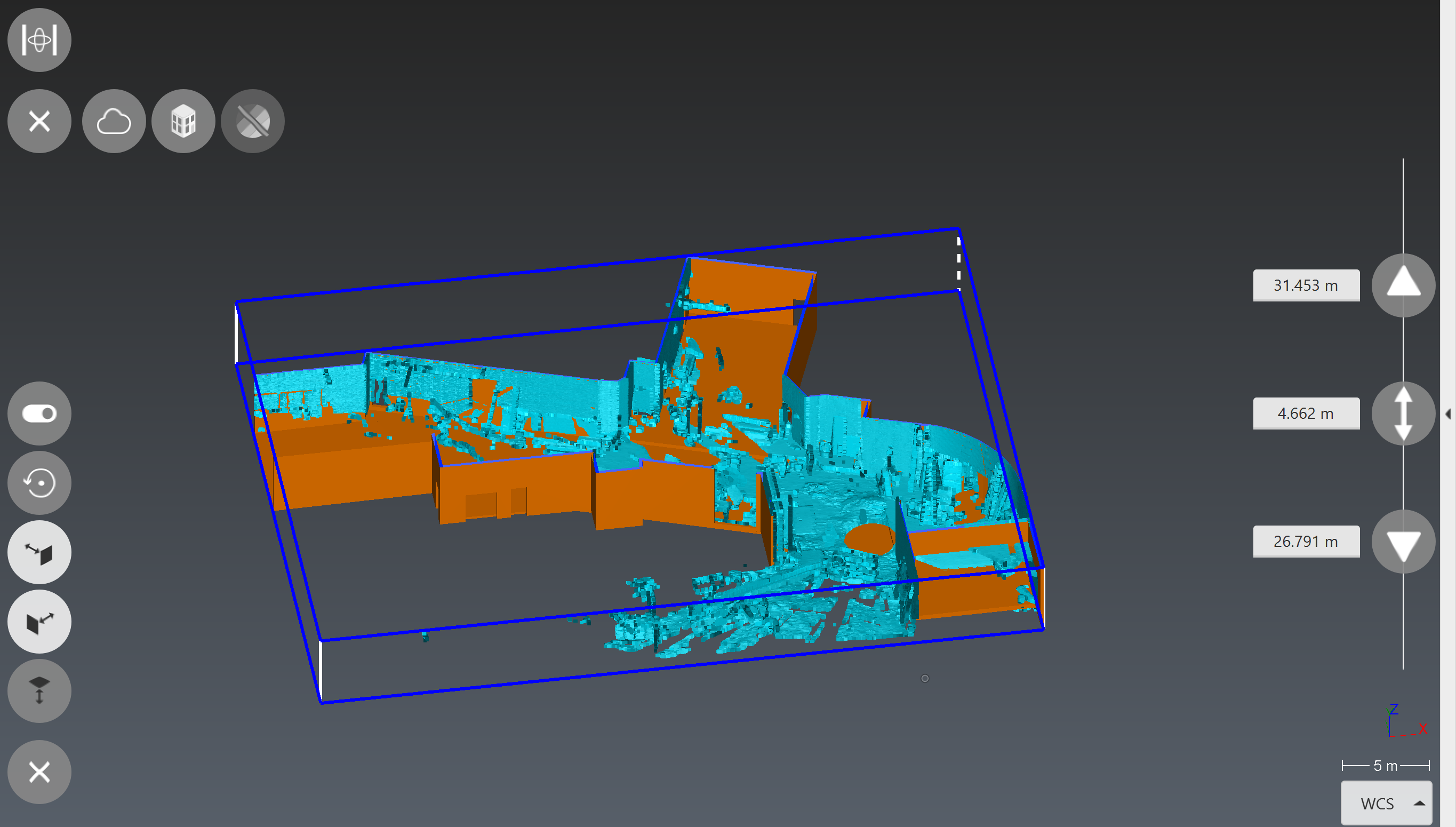 Tap on the screen to display the quick access toolbar, then tap the limit box icon to create and adjust it. Limit boxes are initialized thanks to displayed objects bounding box and UCS orientation.