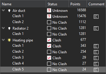 Heating pipe has 5 potential clashes with 677 points overall. Repeat the same process for each clash:
