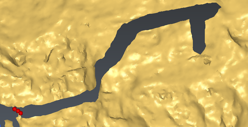 Figure 3: Meshing the dam with an average distance between points of 0.3 m. The result is a mesh made of several disconnected parts: a compound mesh.