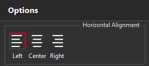 Options panel