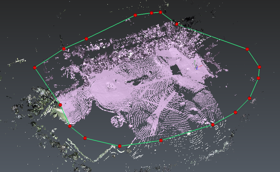 Draw a contour, like the one on the picture, to remove the wrong points around the scene. Note that during the contour drawing the view is locked and cannot be rotated.
