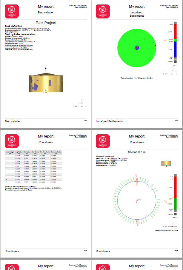 At the end of the workflow, all the results computed during the previous inspections can be included in one single PDF report or exported in a CSV file.