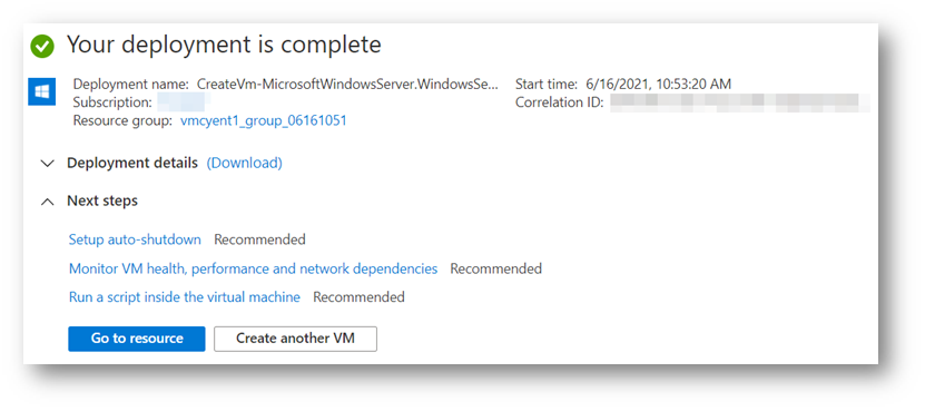You will see a new resource group containing your VM on the Resource groups page (e.g., vmcyent1_group_06161051 in the screenshot below).