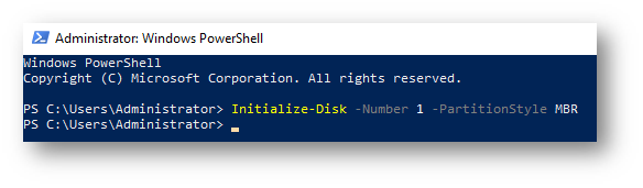 Initialize -Disk -Number 1 -PartitionStyle MBRCreate a new partition on the second disk.